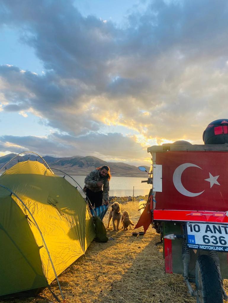 “Motorumuzu yükleyip Kaz Dağları’ndan Bozcaada’ya küçük bir yolculuğa çıktık”diyen çift, “Bu kısa yolculukta eksiklerimizi fark ettik. Bozcaada’da 15 gün daha çalışarak hem eksiklerimizi giderdik hem de yolculuğun en önemli parçası olan köpek römorkunu kendimiz tasarlayıp yaptık. Karavan hayaliyle başlayan yolculuğumuz, artık iki tekerlek üzerinde keşif serüvenine dönüşmüştü. Köpeğimiz Daniel ile bu yolculuğu nasıl sürdüreceğimiz en büyük meselemizdi. Daniel, bize muhtaç bir can, hayatımıza aldığımız bir sorumluluktu. Onu bırakmak yerine, onun en konforlu biçimde seyahat etmesi için çözümler aradık” dedi ve ekledi: