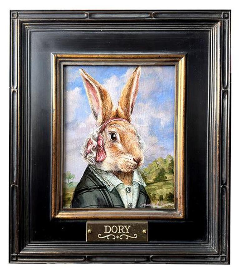 Ressam Cassandra Kim’in Dory’nin anısına resmettiği Tavşan Dory (Dory The Rabbit) adlı yağlıboya tablo.