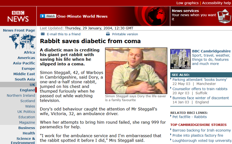 Simon Steggall komadan çıktıktan sonraki günlerde Dory bir nevi ünlü oldu. Bölgenin yerel gazetesi Hunts Post hikayeyi manşetten verirken ve kısa süre sonra ulusal basın da konuyu takip eder oldu. Hatta Londra’da bir sabah programına çıkmaları teklif edildi. Yapımcılar Simon Steggall’a Londra’da dev bir ev tavşanı için konaklama sağlayamayacaklarını söylediklerinde, dostunun konforunu önceleyen Steggall teklifi kibarca reddetti.