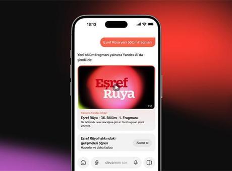Yandex Türkiye, Demirören Holding ile yapılan iş birliği kapsamında Eşref Rüya dizisinin 36. bölüm fragmanının bugün yalnızca Yandex AI üzerinden ilk kez yayımlandığını duyurdu. İzleyiciler, uygulamadaki giriş kutusuna “Eşref Rüya fragman” yazarak fragmanı anında izleyebiliyor.